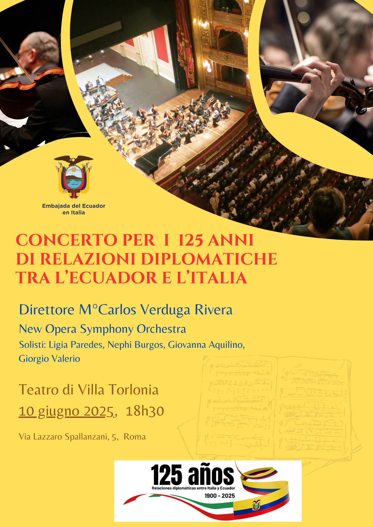 To celebrate 125 years of diplomatic relations between Ecuador and Italy, the South American country’s Embassy is organizing a concert at Villa Torlonia on June 10 at 6:30 p.m. at the Villa’s theater.