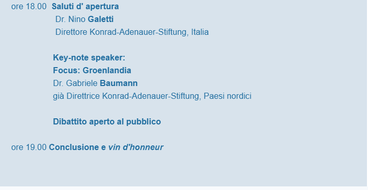 Highlighting the EU and U.S. interest in Greenland’s subsoil wealth, particularly rare earths, the next meeting, “Fokus: Greenland”, will be addressed at the Konrad Adenauer Foundation on Wednesday, March 5, from 6-7:30 p.m., with Dr. Gabriele Baumann, former director of KAS in the Nordic countries and soon to be director of the KAS Office in Belarus, in attendance.