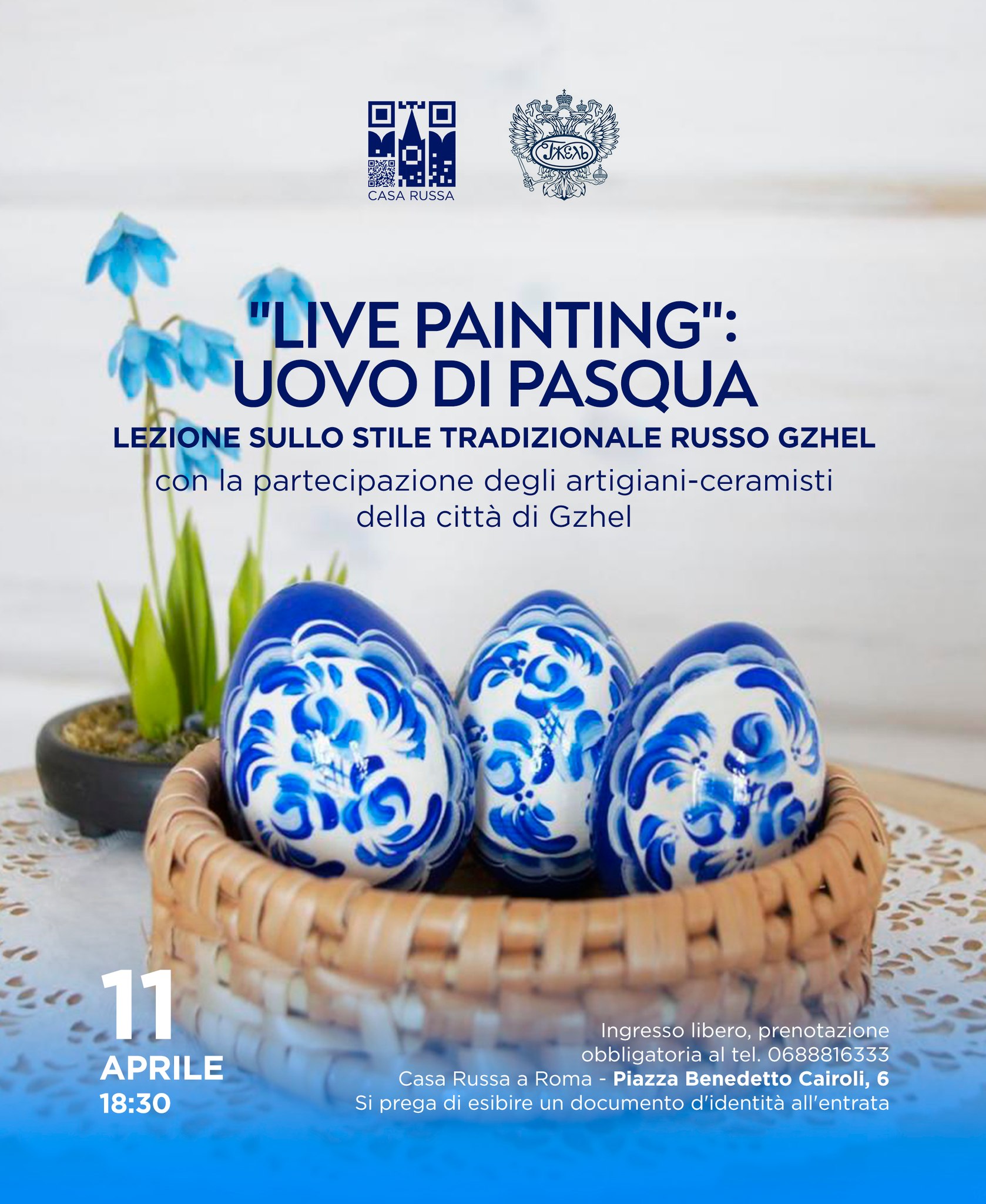 The main painter of the “Gzhel” Union, Tatyana Sivova, will draw an Easter egg in real time. Thanks to Live Painting technology, guests of the Russian House in Rome will be able to see how the famous blue and white ornament, an integral part of Russian culture and world cultural heritage, is created.