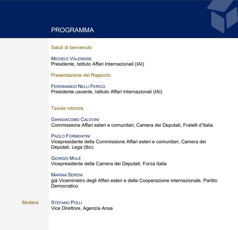 Taking inspiration from the 2024 edition of the report on Italian foreign policy by the International Affairs Institute, the event represents an opportunity to reflect on the main foreign and international policy dossiers at the center of the agenda of Giorgia Meloni’s government during the year – the positioning of the country before, during and after the elections for the renewal of the European institutions, the persistence of war against Ukraine, the US presidential elections, the worsening of the Middle Eastern crisis with the related risks of spillover at regional level, the Italian presidency of the G7 – also outlining the prospects and choices the country will face in 2025.