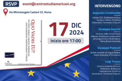 The Centre for American Studies presents the new book ‘Quo vadis EU?’ on 17 December at 5pm with a debate.