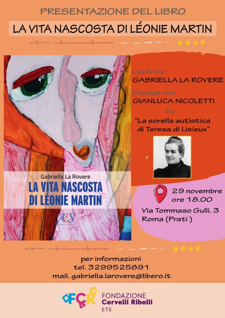 Presentation of the book “The hidden life of Léonie Martin” by Gabreilla La Rovere who on the occasion will talk with Gianluca Nicoletti at Domimedica in Via Tommaso Gulli, 3.