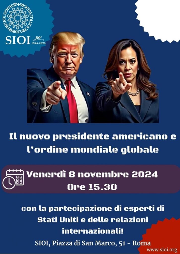 In the aftermath of the outcome of the US presidential election, the SIOI has organised a discussion on ‘The New US President and the Global World Order ’ with the participation of US and international relations experts on Friday 8 November at 3.30 p.m. The event will be held at the headquarters in Piazza San Marco, 51 in Rome.