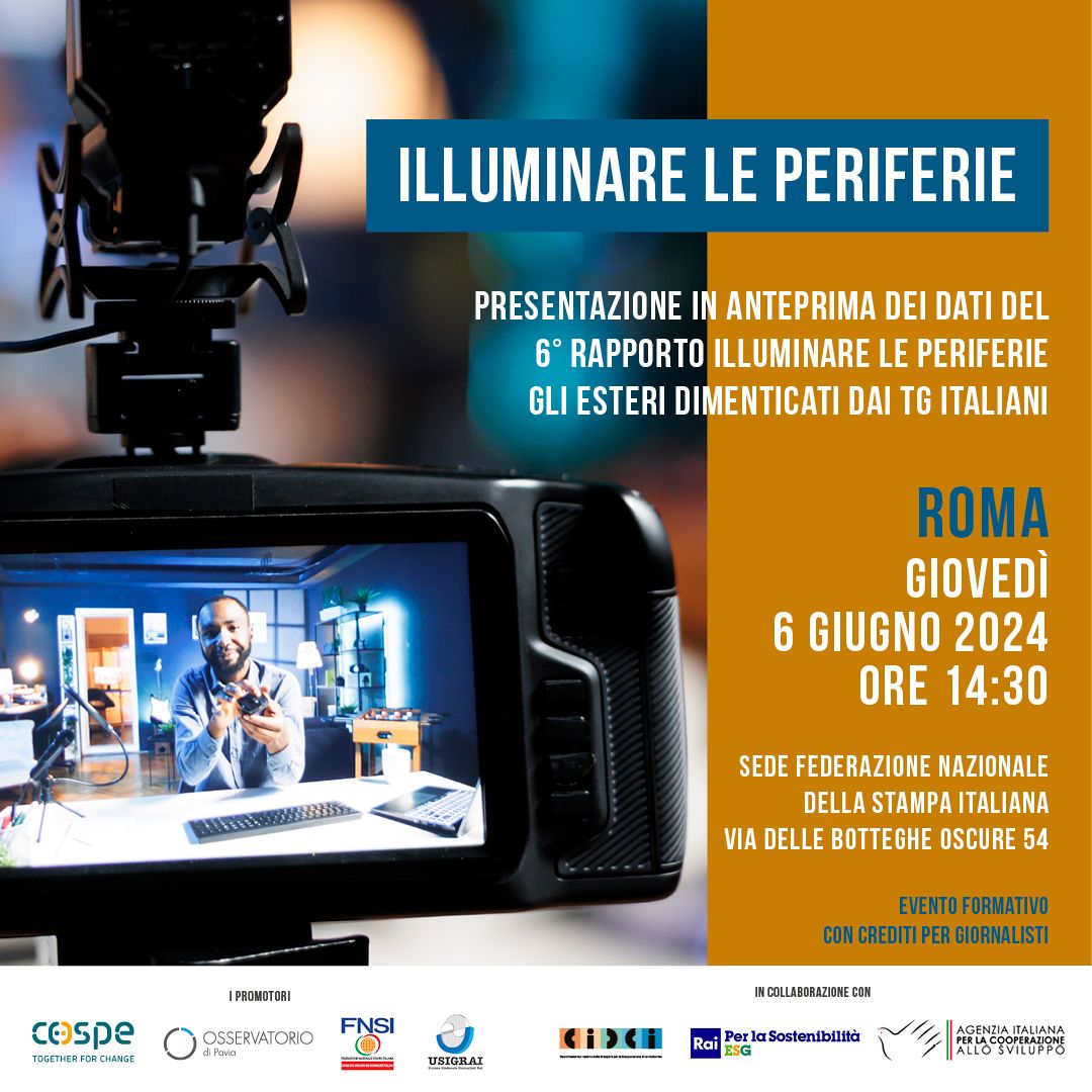 The presentation of the sixth report “Lighting up the suburbs. Foreign affairs forgotten by Italian news”, which will be held in Rome on Thursday 6 June from 2.30 pm at the headquarters of the National Federation of the Italian Press (Rome, via delle Botteghe Oscure 54).
