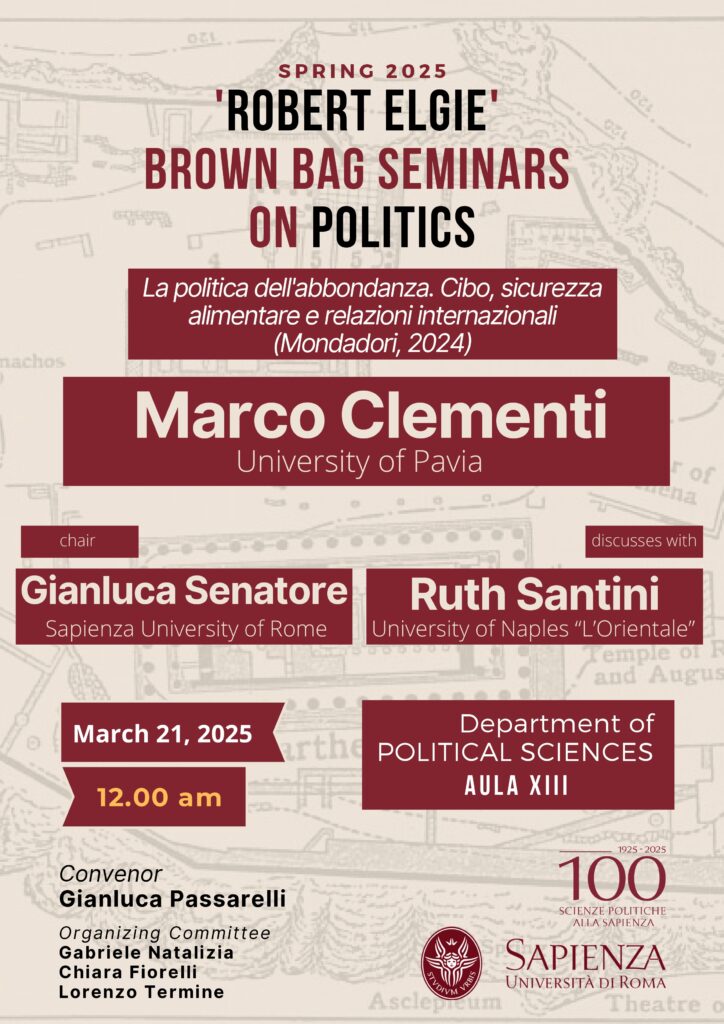 “The Politics of Abundance. Food, food security and international relations” – Meeting with Professors Marco Clementi (Univ. Pavia) and Ruth Hanau Santini (Univ. Naples ”L’Orientale) Gianluca Senatore (Sapienza Univ. Rome)