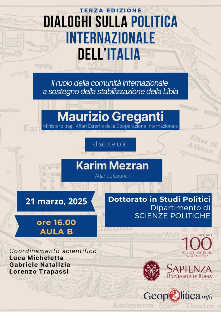 “The Role of the International Community in Supporting the Stabilization of Libya” – Meeting with Min. Plen. Maurizio Greganti (MAECI) and Prof. Karim Mezran (Atlantic Council).