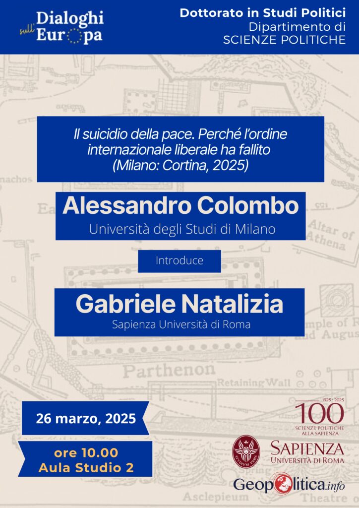 “The Suicide of Peace. Why the liberal international order has failed” – Meeting with Professors Alessandro Colombo (Univ. Milano ‘La Statale’) and Gabriele Natalizia (Sapienza Univ. Rome)