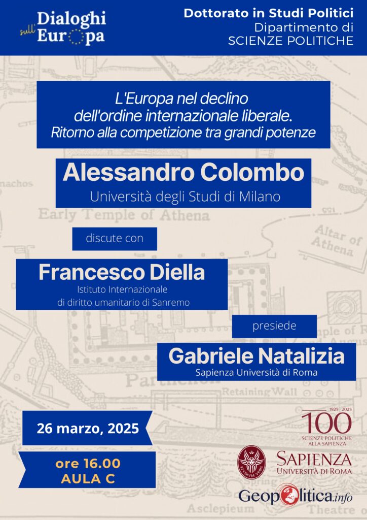 “Europe in the Decline of the Liberal International Order. Return to competition between great powers” – Meeting with Professors Alessandro Colombo (Univ. Milano ‘La Statale’) and Gabriele Natalizia (Sapienza Univ. Rome) and Francesco Diella (International Institute of Humanitarian Law, Sanremo)